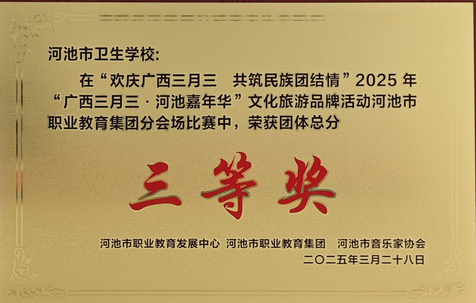 2025年”广西三月三.河池嘉年华“文化旅游品牌活动河池市职业教育集团分会场比赛三等奖