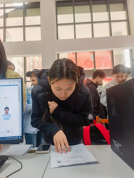 在技术保障方面,信息科教师提前对校园网络及打印设备进行全面检查维护,确保系统稳定运行。学校在实训大楼一楼设置集中审核点,学生分批携带相关材料有序进行现场确认。工作人员耐心指导、严格核验,确保每位考生信息准确无误。