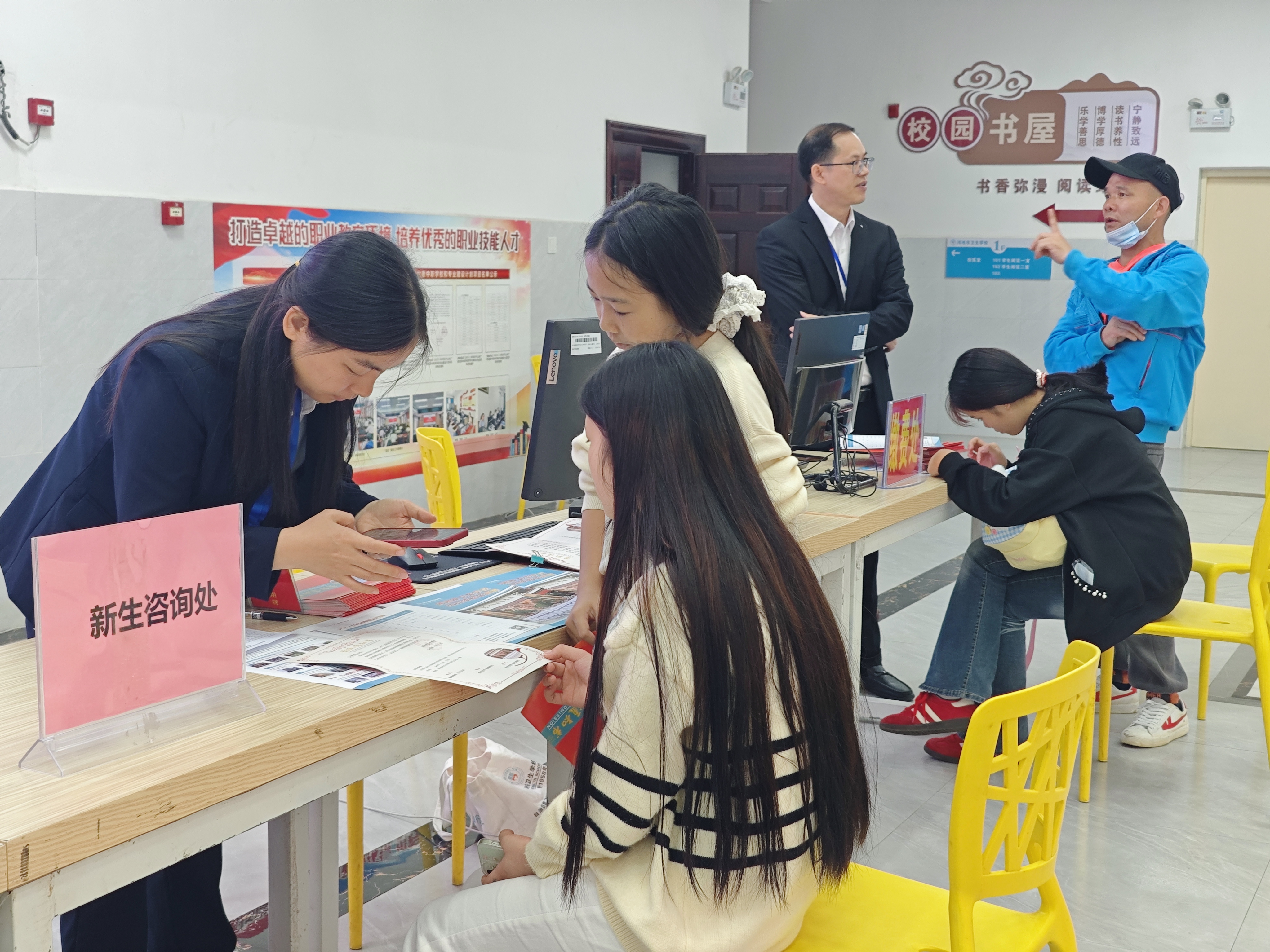 报到期间,校园环境布置规范得体,新生报到指引标识清晰醒目,各项工作流程衔接顺畅。学校教职工提前到岗履职,以饱满的工作热情、严谨的工作作风迎接新生及家长。班主任组精准完成新生信息核验、班级对接、入学手续办理等工作,细致讲解校园管理规范与学业规划相关事项;打印组高效开展入学资料审核、整理归档与打印办结工作,保障流程运转高效;招待组主动提供行李搬运、校园路线引导、咨询答疑等贴心服务,全方位为新生排忧解难,切实让新生及家长感受到学校的人文关怀与优良校风,获得一致好评。